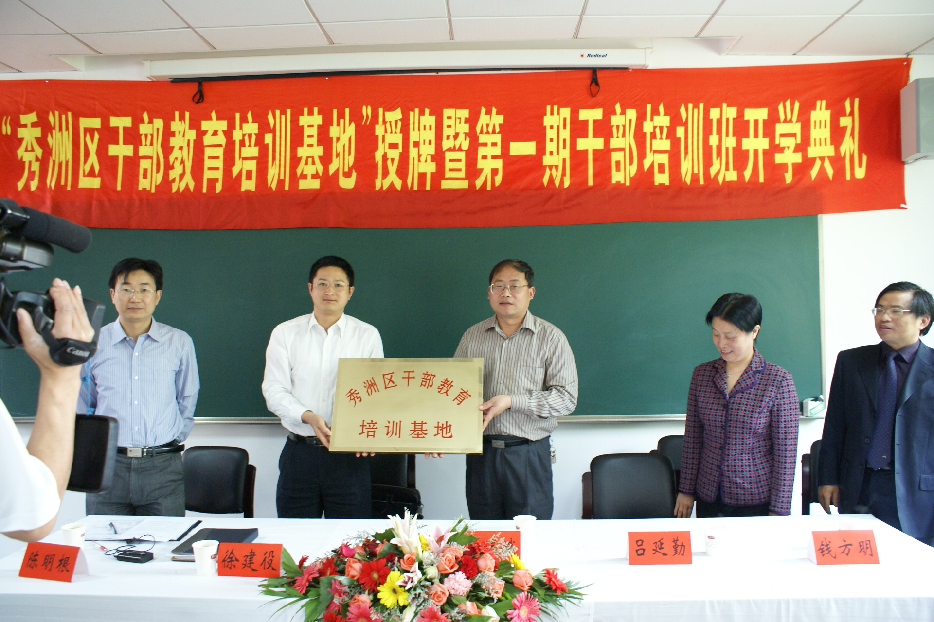 5月12日上午,91短视频 和秀洲区组织部在文苑宾馆共同举办“秀洲区干部教育培训基地”授牌暨第一期干部培训班的开学典礼,由秀洲区组织部陈明根主持,嘉兴学院党委副书记唐瑞娥老师、秀洲区组织部部长徐建役发表了讲话,校办主任吕延勤老师、91短视频 院长钱方明教授、91短视频 总支书记潘抗美老师参加了开学典礼。本次培训班是根据秀洲区区委“干部素质再提升”活动的总体安排,实施百名领导重上大学工程,选调07年度没有到高校参加过培训的科级干部重回课堂,接受培训。本期培训班从5月12日开始,16日结束。共分五讲,91短视频 为此安排了五名有丰富教学经验教师进行授课,并精心准备了授课内容。