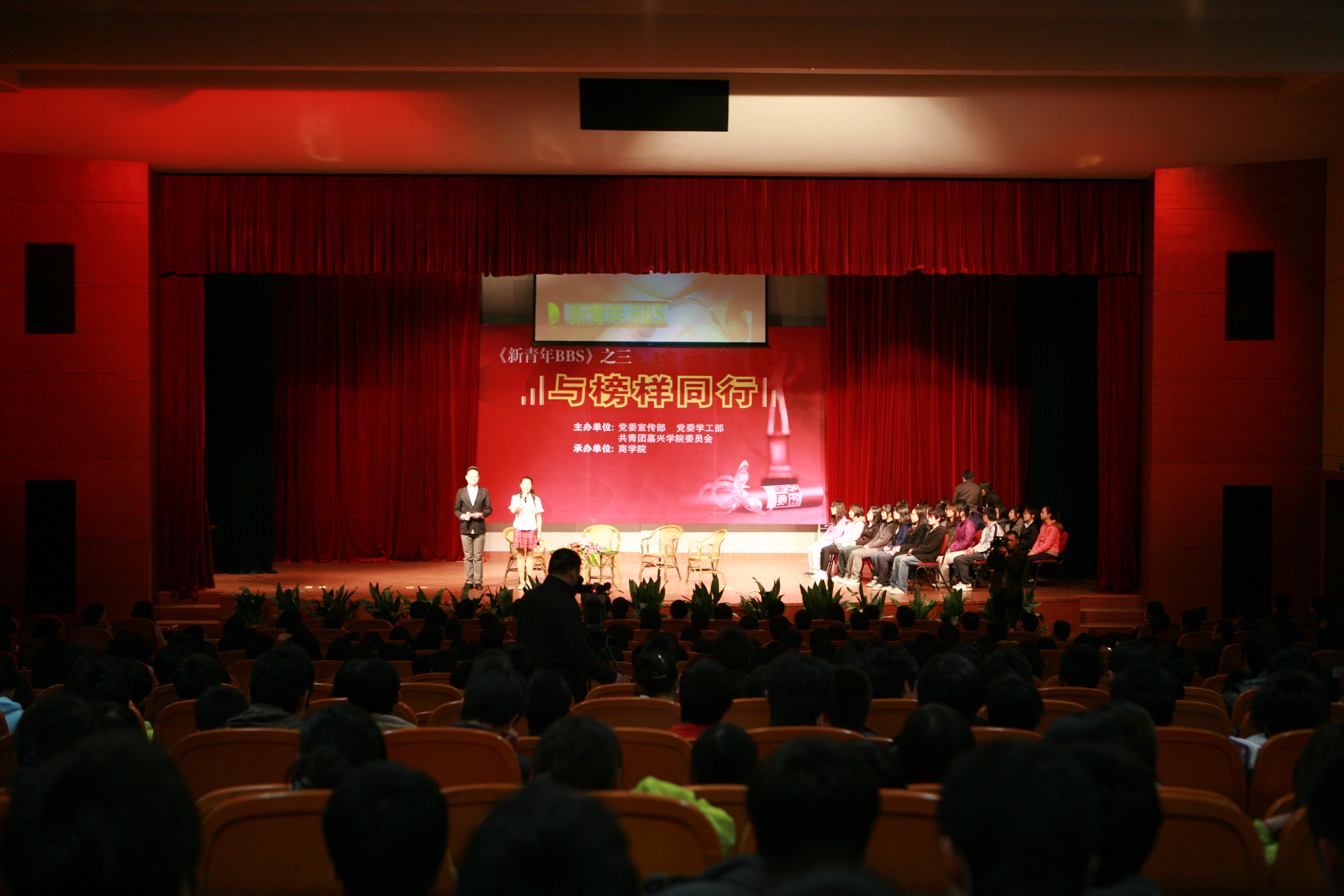 4月8日下午,由嘉兴学院党委宣传部、学工部和校团委主办,91短视频 承办的新青年校园BBS专访三:《与榜样同行》大型论坛在教二报告厅举行。校党委副书记吕延勤出席并讲话,宣传部、学工部、校团委、各二级学院负责人及学生代表650余人参加了论坛。