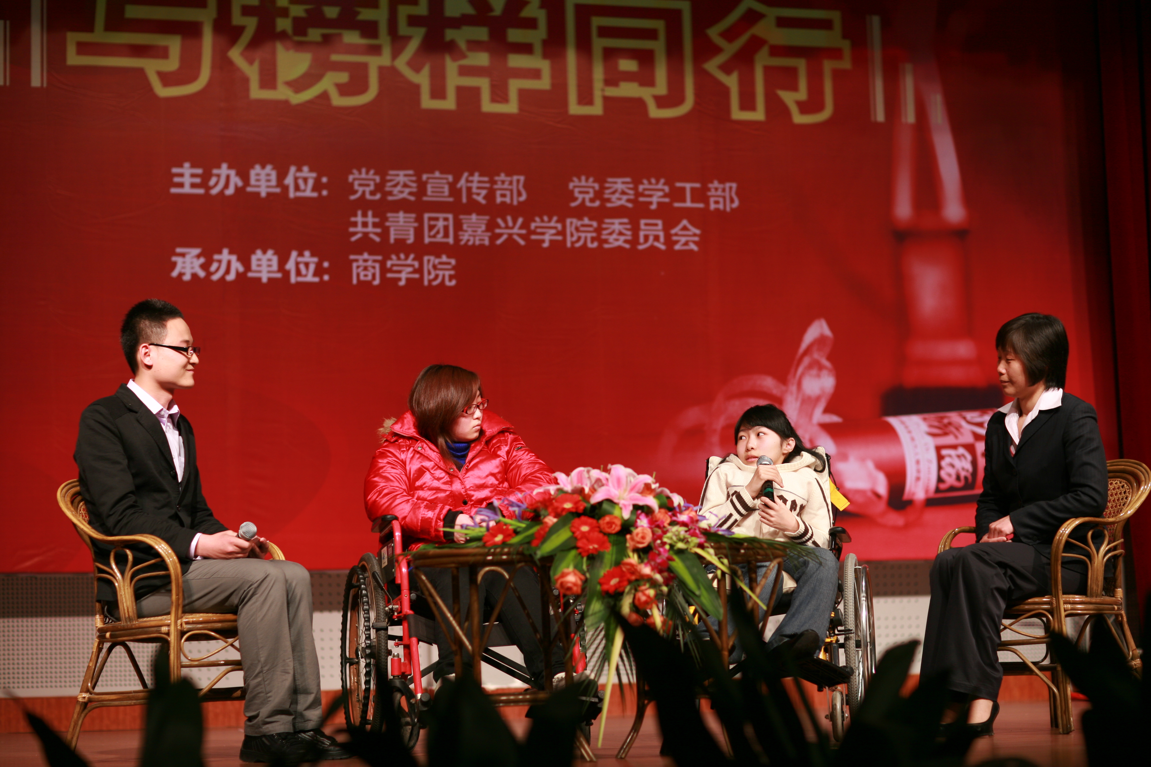 论坛中间,2009年“浙江骄傲”最具影响力人物荣誉称号获得者雷玲玲校友、2009年度“中国大学生自强之星”提名奖田原同学讲述不平凡人生经历,与同学们分享成长体会;献血英雄王鹏同学用自己特别的方式表达他对生命的尊重,讲述其献血的难忘场景;共同重温了嘉兴学院爱心群体曾经走过的路,号召更多的人参与爱心传递接力活动。参加论坛的同学们与现场嘉宾积极互动,进行交流。