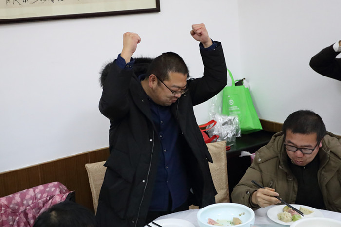 在兴致高涨包饺子的同时,联欢活动还安排了各种丰富多彩的互动环节:评选“最美”、“最难看”、“最具创意”饺子等趣味游戏和“包饺子”、“吃饺子”比赛。在擀面皮、包饺子一条龙比赛中,李亚老师一马当先,以速度质量双优的成绩力拔头筹,拿下全能冠军。在“吃饺子”男子组中,栾斌老师用最短的时间吃完十个饺子,拔得头筹,大家评价他吃出了“气吞山河”的气势。在女子组中,陈野老师以“巾帼不让须眉”的实力,大比分差勇夺第一。游戏中大家争先恐后、跃跃欲试,场面高潮迭起,掌声不断,热闹非凡,大家用欢声笑语增进着彼此的友情。