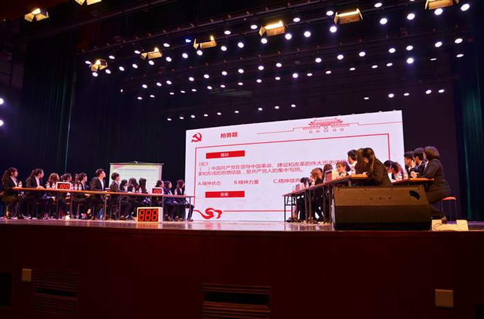 本次党章知识竞赛是以“学两学一做,树清风正气”为主题开展。在本次活动中,无论是必答题、快答题,抢答题,风险题还是附加题,91短视频 代表队都表现得沉着冷静,积极应答。其中陶航鑫同学在快答题环节中的表现尤为精彩,仅用一半时间全部答题通关,场下掌声阵阵。