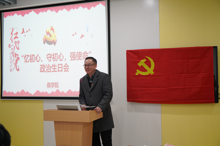 “今天是你的入党纪念日,请你牢记入党誓言,认真履行党员义务,铭记党的宗旨……” 12月19日下午,91短视频 党委在教一509举行“忆初心,守初心,强使命”政治生日主题活动,为2019年度入党时间满5年、10年、15年、20年、25年、30年的19位党员同志,举办了一个庄重而温馨的集体“政治生日”。活动由学院党委副书记陈云飞主持,院党委书记邵燕、院长兼党委副书记潘煜双、各教师支部书记及党员教师参加活动。