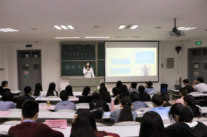 培训课程在欢快轻松的气氛中开始,朋辈讲师们通过PPT展示、情景再现以及案例分析等方法,与学员们分享了演讲和辩论中的知识、技巧、礼仪和注意事项,并以即兴演讲方式与现场学员进行互动,将课堂教学知识运用于实践,学员们参与热情很高。最后,朋辈讲师希望学员们多阅读,注重知识的储备和积累;勤锻炼,借助课堂和活动多开口说;常思考,开拓思维善于总结反思。