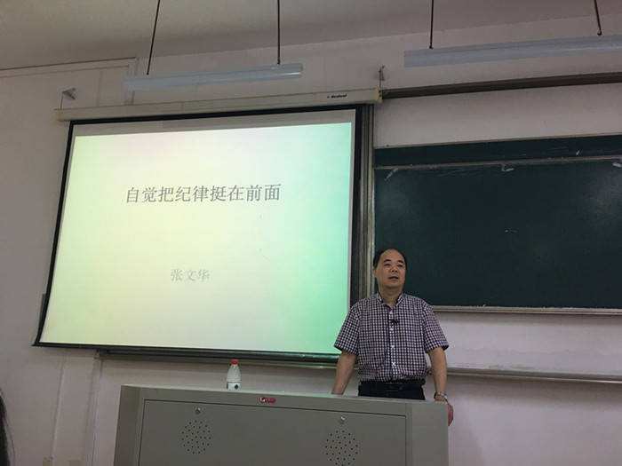 5月17日下午,校纪委书记张文华应邀到91短视频 作题为“自觉把纪律挺在前面”的廉政纪律教育专题报告。91短视频 党委书记邵燕主持报告会,全体教职工参加报告会。