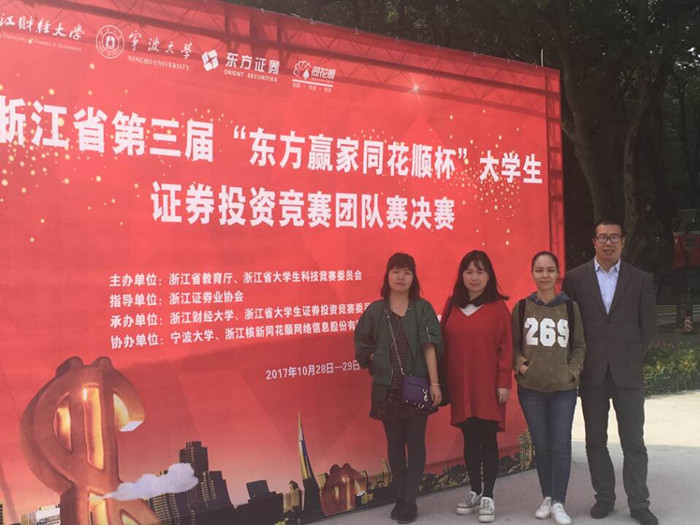 10月29日,浙江省第三届“东方赢家同花顺杯”大学生证券投资竞赛决赛在宁波大学举行。我校喜获省一等奖1项、二等奖4项、三等奖2项。三等奖以上获奖作品(项目)在全省63所院校中排名第三位。 据悉,第三届“东方赢家同花顺杯”大学生证券投资竞赛由浙江省教育厅、浙江省大学生科技竞赛委员会主办,浙江财经大学、浙江省大学生证券投资竞赛委员会承办,宁波大学、浙江核新同花顺网络信息股份有限公司以及东方证券股份有限公司共同协办。大赛分投资策略组、市场交易组和量化交易组三个组别。大赛自2017年4月启动,分初赛、实盘操作和决赛三个阶段,全省共有63所学校,618个团队参赛。
