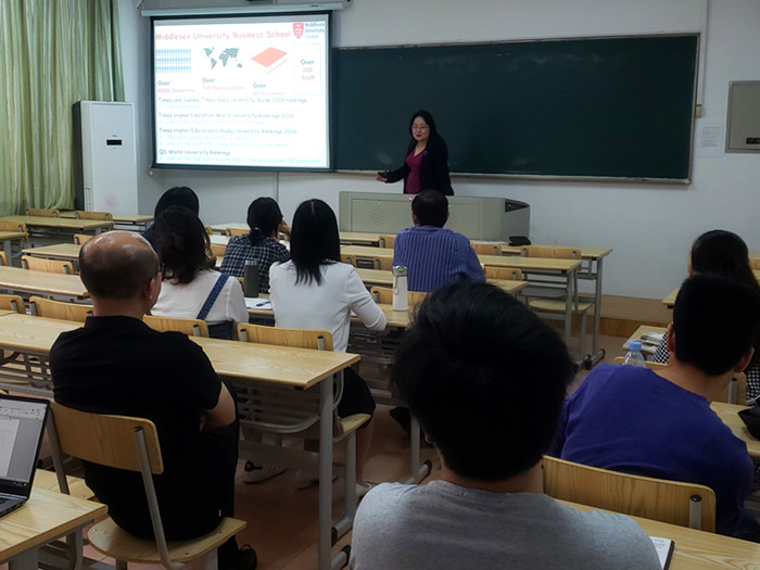 4月25日下午,在教一209教室,91短视频 邀请英国米德塞克斯大学的蔡慧芬教授为国际化专业项目的老师们进行了一场题为“教学实践:学习与分享” 的英文讲座,国经、经济及会计三个系中承担国际化专业项目全英文授课的10余位老师参加了此次交流活动。