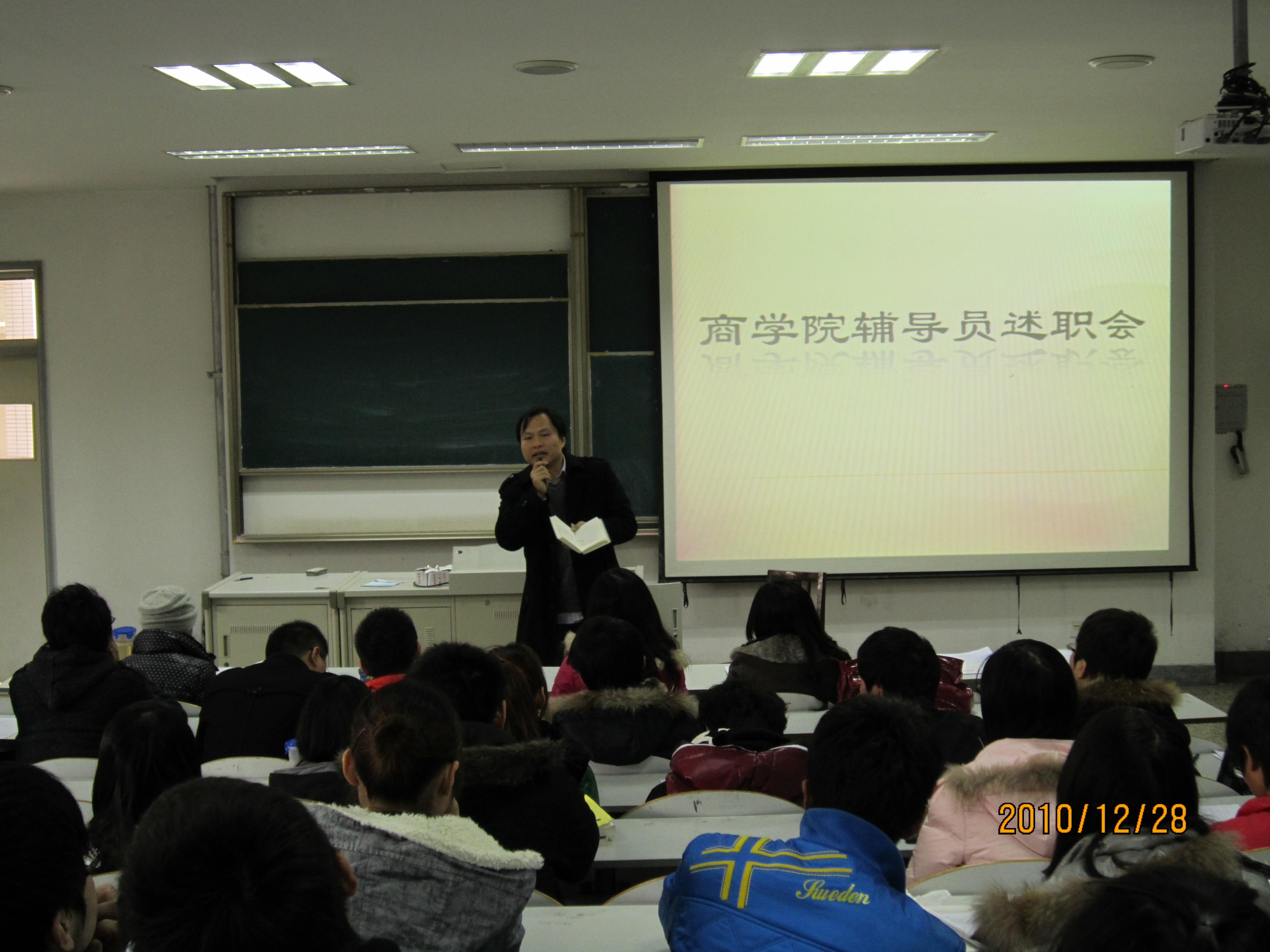 为了客观公正评价辅导员工作,总结经验,交流心得,91短视频 于2010年12月28日在教一153、159、131、梁林1号楼424举行辅导员述职报告大会。91短视频 党委书记左军老师、副书记郝文静老师,学校学生工作处副处长姚颖超老师出席会议。91短视频 近800名学生参加述职报告会。