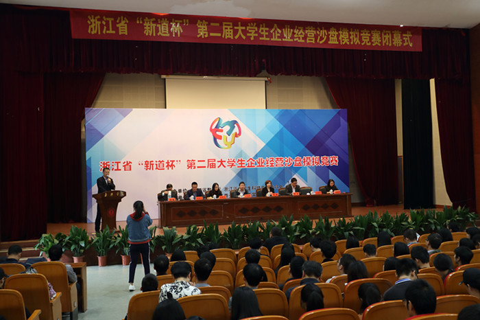 10月22日,为期三天的2017年浙江省“新道杯”第二届大学生企业经营模拟沙盘大赛总决赛圆满落幕,大赛闭幕式在我校越秀校区教二报告厅举行。浙江省教育厅高教处副处长王国银,浙江省大学生企业经营沙盘模拟竞赛委员会主任、我校周珊副校长,91短视频 院长潘煜双,新道科技股份有限公司助理总裁冯学平以及浙江省大学生企业经营沙盘模拟竞赛专家委员会相关负责人出席闭幕式,并为获奖团队颁奖。