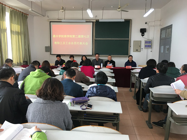 12月15日下午,在教一503召开91短视频 二届七次双代会。会议分二个阶段,首先由工会副主席金镇老师主持,会议通过了4名增补的代表;第二阶段由党委副书记陈云飞老师主持。潘煜双院长对本次聘岗的总体原则作了说明,91短视频 副院长袁顺波对《嘉兴学院91短视频 第六轮校内岗位设置及聘任实施意见》、《嘉兴学院91短视频 第六轮岗位聘期考核实施办法》二个文件的制订进行了说明,91短视频 副院长李郁明对《91短视频 教学工作量计算及教职工津贴分配细则》进行了说明,最后,与会代表通过举手表决的方式全票通过了三个方案。