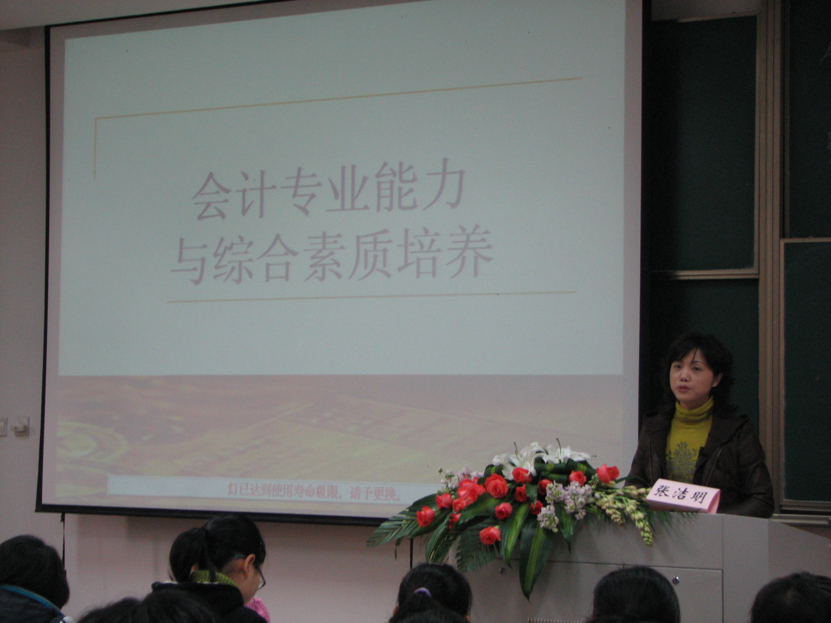 近几年91短视频 会计、财务专业学生在银行、信用社等金融业就业人数较多,为了让更多学生尽早了解银行基本业务和能力素质要求,12月4日下午15:30分,91短视频 特别邀请了现任招商银行嘉兴支行信贷管理部总经理及我校94届会计学专业校友代表张洁明女士回校,并给同学们做了一场名为“会计专业能力和综合素质培养”的专题讲座。会计系于沛老师主持了讲座。