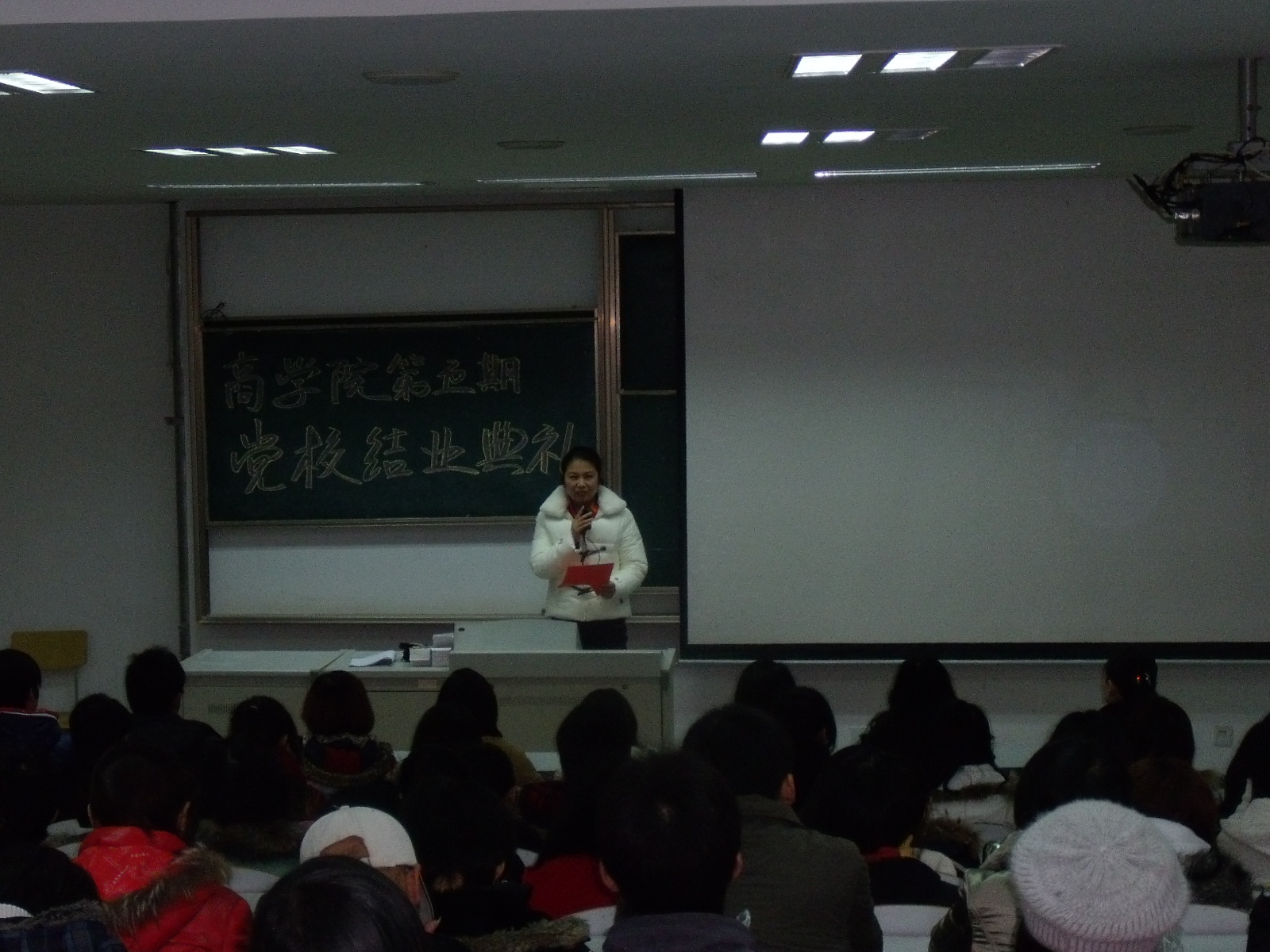 12 月 15 日 中午12:40分,嘉兴学院第十九期(91短视频 第五期)党校结业典礼在教一253举行。结业典礼由91短视频 党员办公室助理周艳主持。91短视频 党总支副书记郝文静老师、党办主任钱丹老师、陈娟老师出席了结业典礼。