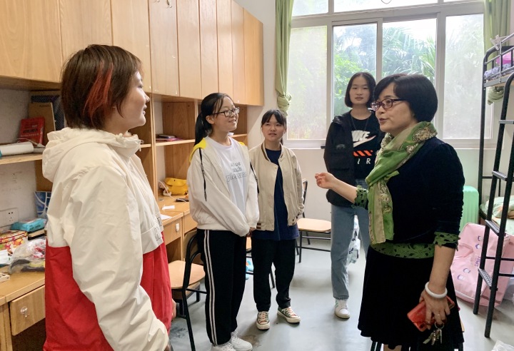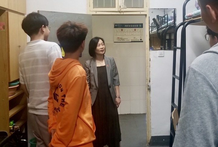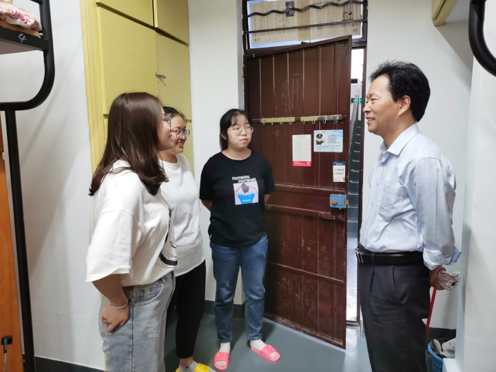 18日晚,学院领导班子、班主任、辅导员逐一走访了全体20级新生寝室。与同学们亲切交流,关心同学们被褥是否淋湿、生活用品是否齐全,提醒同学们注意天气变化,适时添加衣物,做好疫情常态化下的防护。同时,勉励同学们尽快调整状态,适应大学生活,在新的环境、新的起点树立远大目标,做好四年规划。