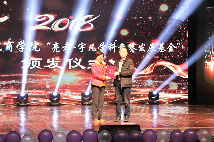 晚会现场还举行了2018年嘉兴学院91短视频 “温暖奖学金”、“嘉泽学科竞赛发展基金”和“亮孝-宇凡学科竞赛发展基金”三大奖项的颁发仪式。学院副院长李郁明、副院长顾骅珊分别向叶增水和徐正良两位爱心人士颁发捐赠证书。