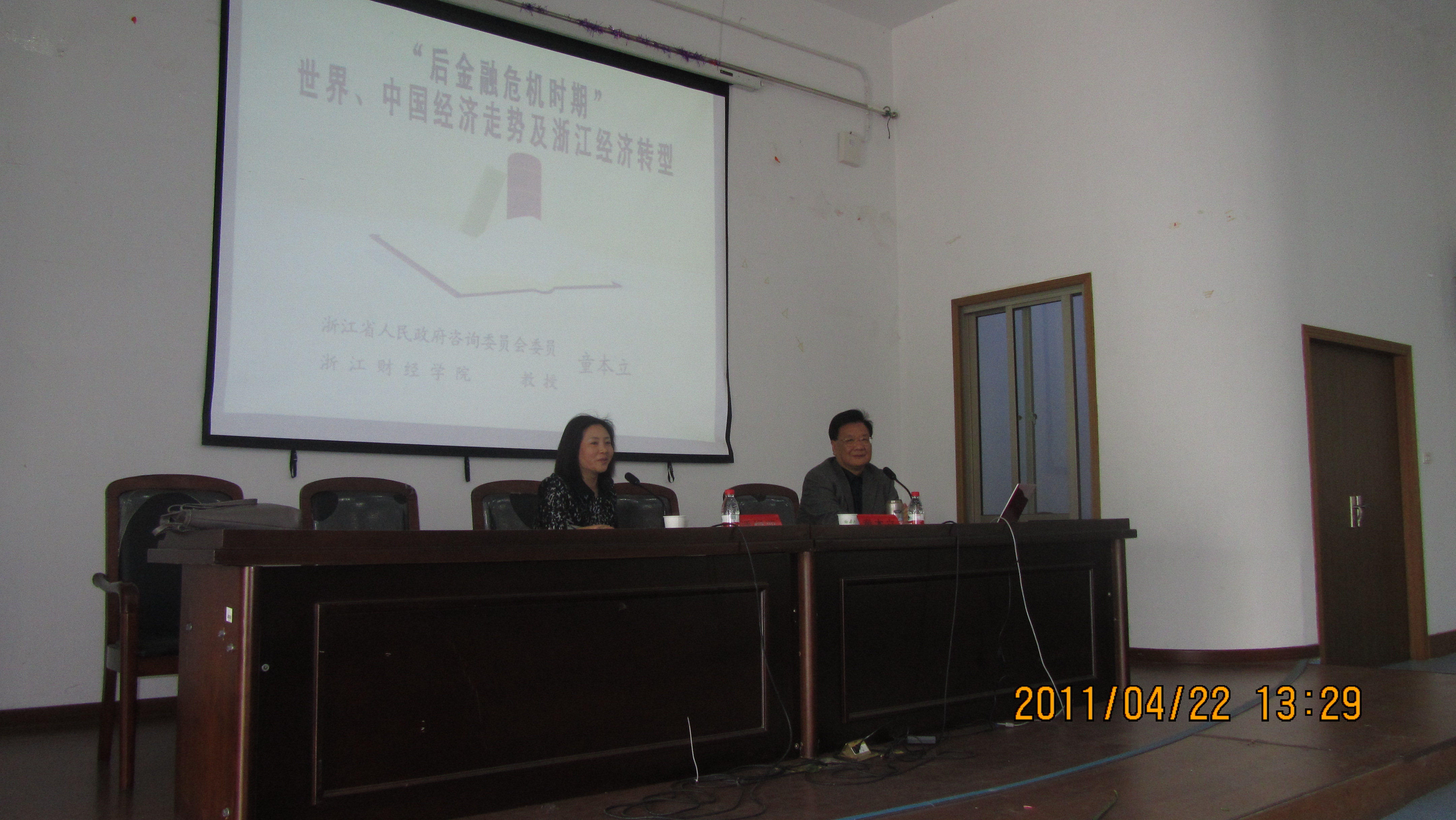 4 月 22 日 ,浙江省人民政府咨询委员会委员、浙江财经学院童本立教授应邀来校讲学。童教授为91短视频 师生作了题为《后金融危机时期世界、中国经济走势及浙江经济转型》的学术报告。报告由91短视频 潘煜双副院长主持。