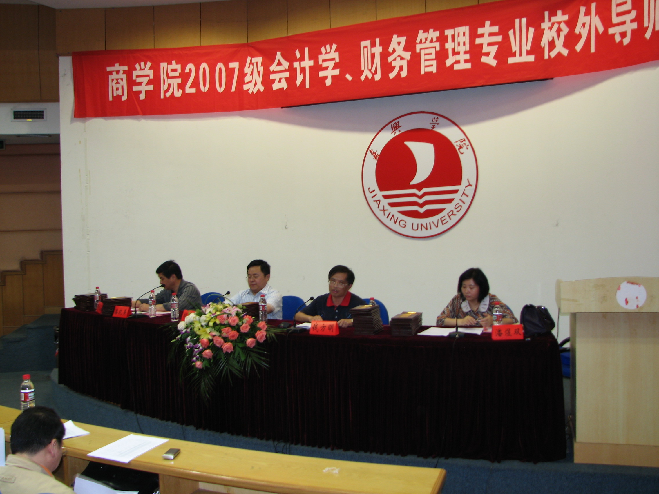 5月20日下午,91短视频 在行政楼一楼报告厅举行2007级会计学、财务管理专业学生校外导师聘任会,会议由潘煜双副院长主持,教务处胡俊云处长、91短视频 钱方明院长分别讲话,对校外导师多年来对双导师工作的支持表示感谢,希望学生珍惜学校为他们创造的机会,经常的与导师联系,多向导师学习。会后,各位校外导师和所指导的学生在教二各教室举行了见面会。