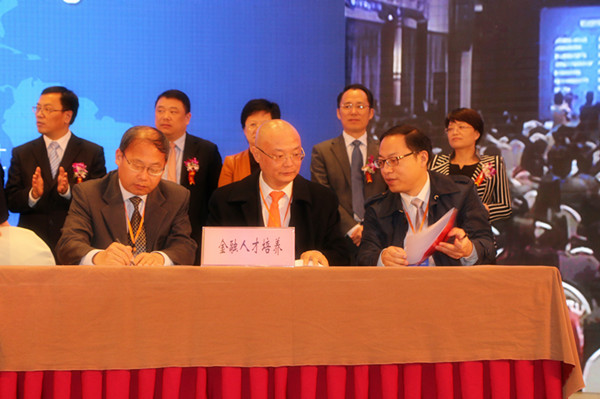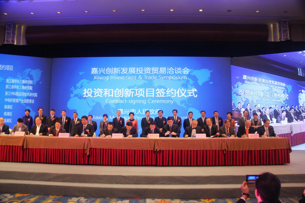 11月8日,作为嘉兴市一年一度的重大经贸活动,由嘉兴市人民政府主办的2016嘉兴创新发展投资贸易洽谈会(嘉洽会)开幕。在重大项目签约仪式上,嘉兴学院党委副书记吕延勤、嘉兴市南湖区委常委、南湖新区(金融创新示范区)党工委书记吴佳、南湖互联网金融学院法定代表人曹勇分别代表校政企三方签订了合作协议,嘉兴市委书记鲁俊,市长胡海峰等见证了签约仪式,91短视频 院长潘煜双、社会合作处副处长薛峰、91短视频 副院长李郁明等出席签约仪式。