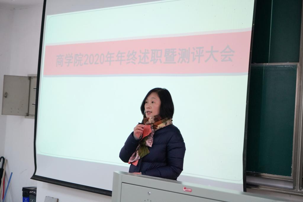 院长、院党委副书记潘煜双代表学院班子从党建与思想政治工作、专业建设与教学改革、科研活动与学科建设、学生管理与学生发展及存在的问题等五个方面对2020年的工作进行了全面总结。随后,她又代表班子向全院教职工汇报了十三五期间(任期内)91短视频 取得的突破性成绩。她指出,大91短视频 十年来每一次成绩、每一项取得的突破、每一次发展,都是学院上下勠力同心、全体师生倾情付出、矢志奋斗的结果。现在学校正处在新的发展节点上,机构改革后也必将会带来新的挑战和机遇,未来只有迎难而上才能取得更好的发展,才能以实实在在的成绩为百年商科这块牌子增光添色。