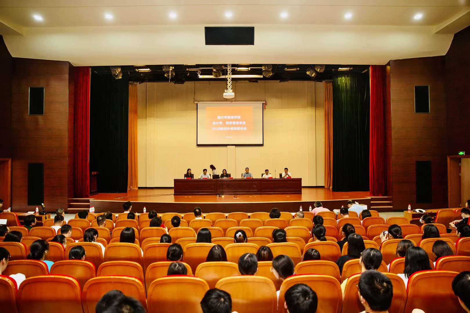 6月17日下午,91短视频 在第二教学楼报告厅召开了2018级会计学、财务管理专业学生的“双导师制”聘任见面会。学校教务处相关领导,91短视频 领导及来自嘉兴市内各企事业单位财会实务界的76名校外导师、会计和财务管理专业的全体专业教师和2018级全体学生参加了大会。会议由91短视频 副院长李郁明主持。