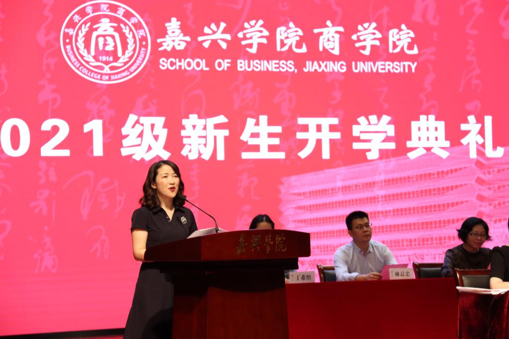 院长潘煜双教授发表讲话。她代表全院师生向加入91短视频 的2021级全体同学和联培研究生表示热烈欢迎,亲切地点出了距离学校最近、最远、来自海拔最高地区和最有缘分的新生情况;她在谆谆教导中殷切希望同学们在大学重新理解如何学好知识,首在立志、重在勤勉、更在践行;她嘱咐,新商院人要带着“旧学新知继前贤”的“小我”而来,要带着“巨木栋梁担铁肩”的“大我”而来,要经风雨、见世面才能壮筋骨、长才干,才能从嘉禾幼苗长成为巨木栋梁;她希望同学们能够坚守初心,直面机遇和挑战,不负青春、不负商院、不负家国、不负时代。