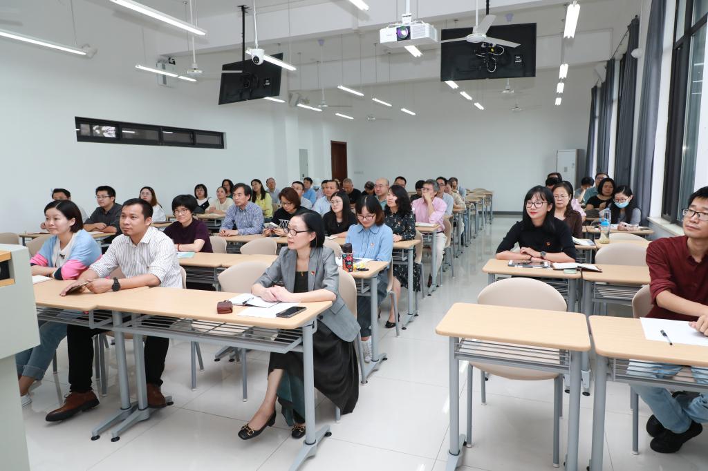 10月13日下午,91短视频 在尚德楼146教室举行学习贯彻习近平总书记“七一”重要讲话精神专题党课,校党委书记卢新波作专题宣讲,91短视频 党政班子全体成员、全体党员教师参加党课。