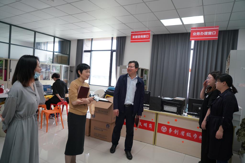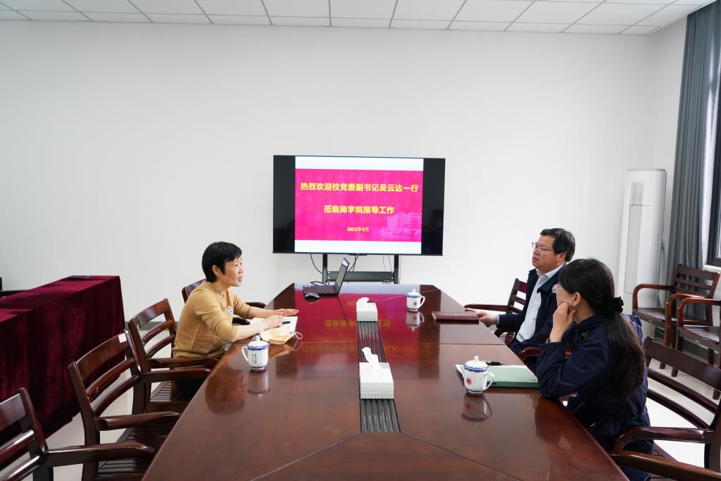 4月27日上午,校党委副书记吴云达到91短视频 调研指导工作,校工会常务副主席朱奕远陪同调研,91短视频 党委书记邵燕参加了调研座谈。