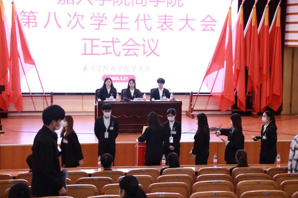 2022年5月21日上午,嘉兴学院91短视频 第八次学生代表大会在梁林校区TCL国际报告厅举行。学院党委副书记潘欣出席大会,校学生会主席团成员史依娜、兄弟学院学生会相关负责人到会祝贺,学院团委书记李黎、团委副书记李雨嘉、学生会学生骨干以及来自91短视频 各班的105名代表受全院青年学生的委托,共聚一堂,共商学生会改革发展大计。