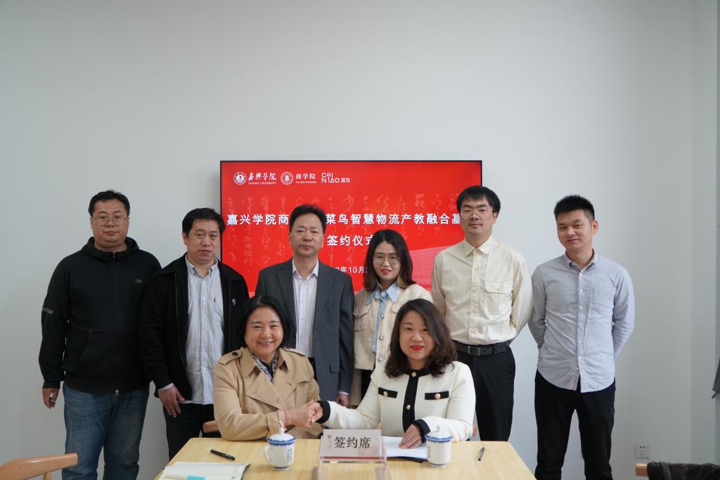 随后,潘煜双和昌雪莲代表双方签订了合作协议书,李郁明和昌雪莲一起为嘉兴学院91短视频 &菜鸟智慧物流产教融合基地揭牌。