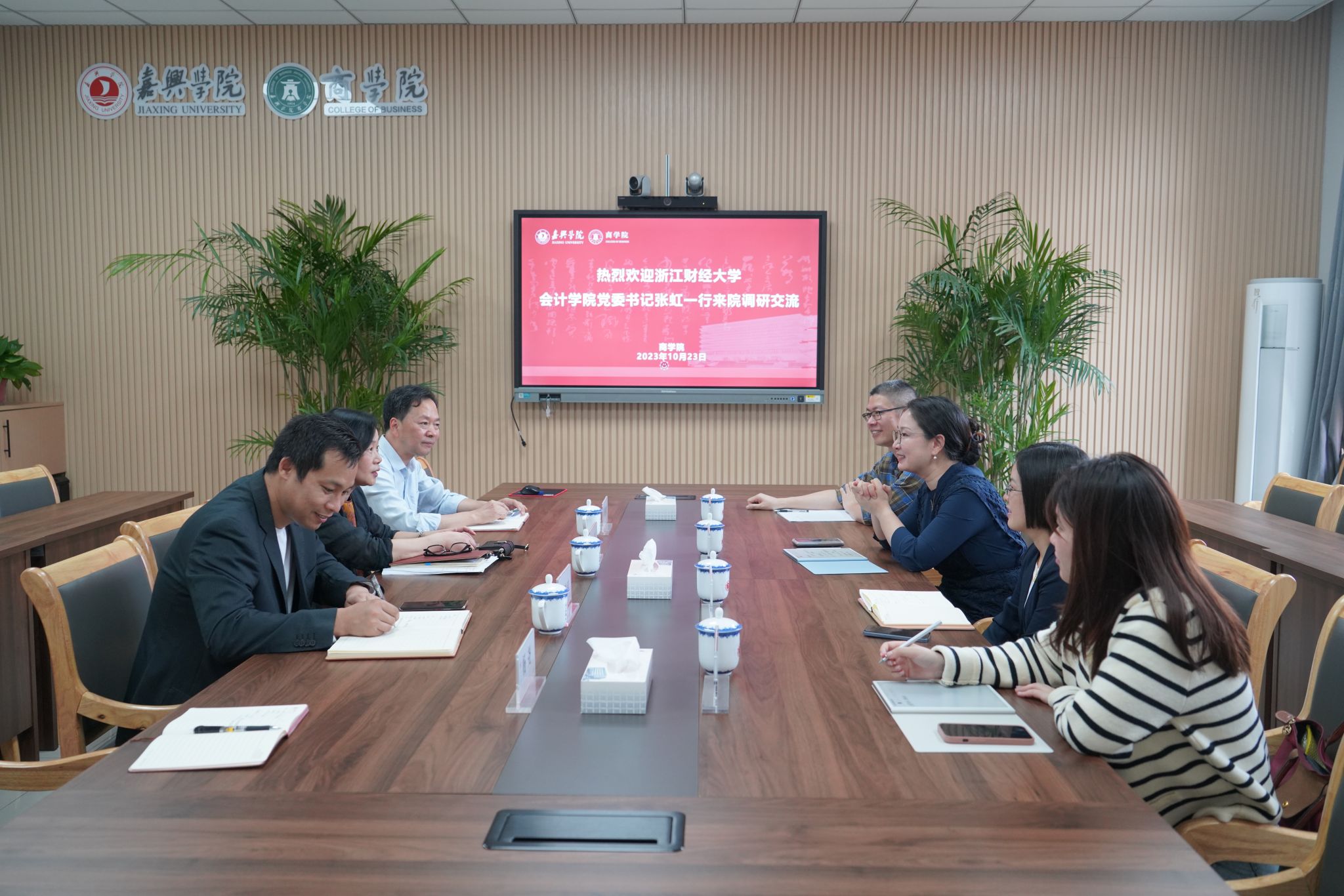 10月23日下午,浙江财经大学会计学院党委书记张虹、副院长李文贵、李宗彦一行来院调研交流,院党委书记邵燕、副院长李郁明、翁胜斌参加交流座谈。