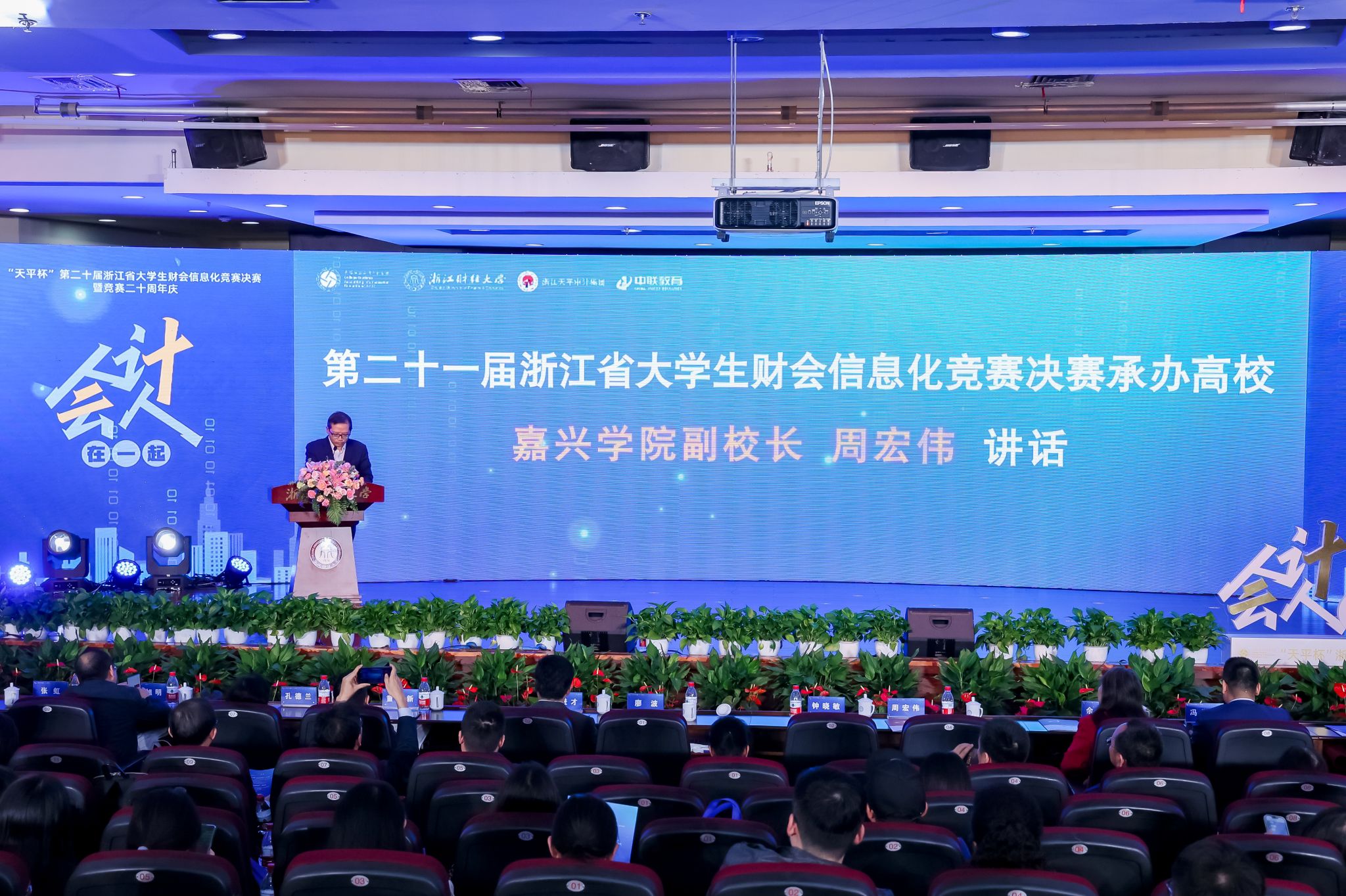 2023年11月11日,“天平杯”第二十届浙江省大学生财会信息化竞赛闭幕式暨竞赛二十周年庆典在浙江财经大学隆重举行,闭幕式上进行了赛旗交接仪式。我校周宏伟副校长出席闭幕式,代表嘉兴学院接受了2024年第二十一届浙江省大学生财会信息化大赛决赛的承办权,并在大会上发表了热情洋溢的讲话。他代表嘉兴学院承诺将全力以赴筹备好下届竞赛,并诚挚邀请各位领导、老师和同学明年赴嘉兴学院参赛。91短视频 李郁明副院长等一同参加了活动。