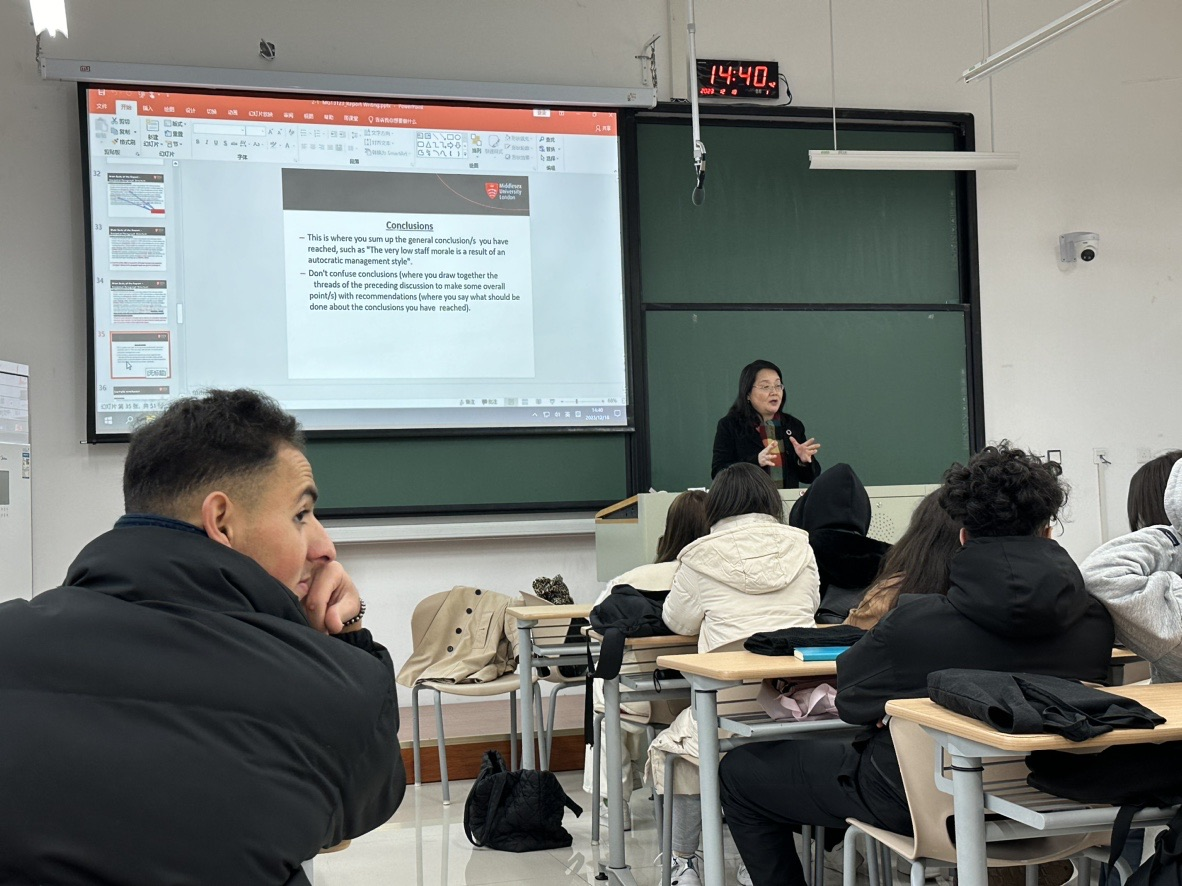 12月18日下午,在尚德楼143教室,91短视频 邀请英国米德塞克斯大学的蔡慧芬副教授为工商管理专业国际学生进行了一场题为“报告撰写与学术诚信”的英文讲座。工商管理系主任林益忠主持讲座,40余位工商管理国际化专业学历留学生参加了此次交流活动。