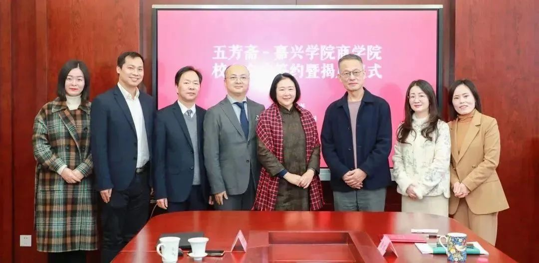 2023年12月20日上午,五芳斋-嘉兴学院91短视频 校企合作签约暨揭牌仪式拉开帷幕,开启产教融合的新篇章。嘉兴学院91短视频 院长潘煜双、副院长李郁明、副院长翁胜斌以及党委副书记潘欣,浙江五芳斋实业股份有限公司董事长厉建平、实业总经理马建忠、实业副总经理徐炜、人力资源总监黄锦阳等出席签约暨揭牌仪式。