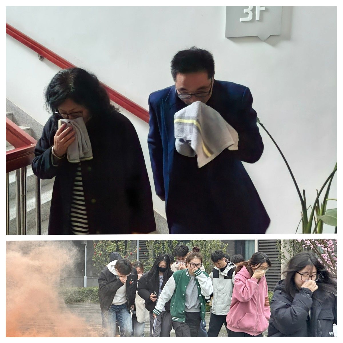 28日下午,伴随着紧急的火灾警报声,火灾疏散逃生演练正式开始。参加演练人员在模拟着火点侧上方正确使用灭火器进行模拟灭火,与此同时,各楼层疏散引导员按预定路线引导师生快速有序向室外逃生。全体师生纷纷掩住口鼻,通过消防楼道紧急疏散撤离至安全区域。经现场工作人员清点人数,所有师生均安全有序到达集合地点。