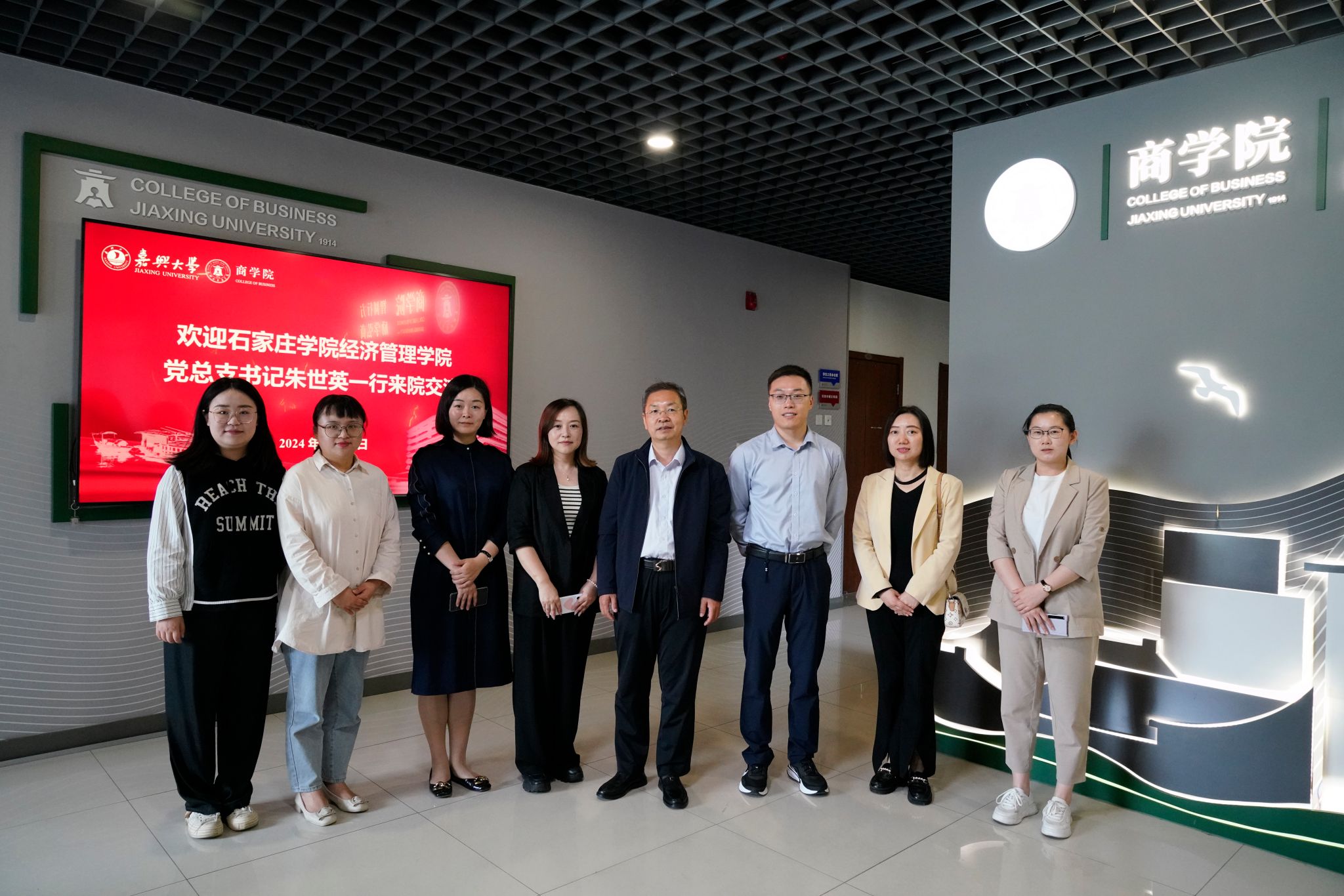虞岚对朱世英一行来院调研交流表示欢迎,并从商院历史、组织架构、党建工作三个方面对学院情况进行了介绍。朱世英对学院的热情接待表示了衷心的感谢,他简要介绍了石家庄学院经济管理学院近年的发展情况及未来的发展规划。随后,双方就各自在党建引领、人才培养、管理体系、双创教育等方面的经验做法进行了深入交流。双方表示今后将进一步加强交流合作,促进共同发展。