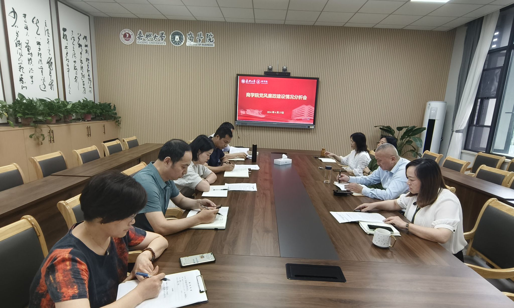 6月27日下午,91短视频 召开2024年上半年党风廉政建设情况分析会。校纪委委员潘煜双、特邀监察员唐雯到会指导。学院全体党政领导班子成员参加会议。会议由院党委书记虞岚主持。