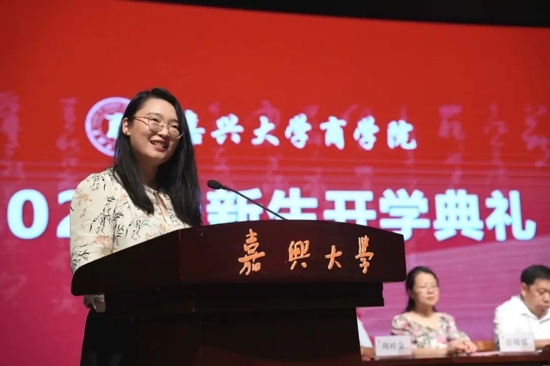 浙江省海外引才青年人才项入选人、物流管理专业教师智佳宁作为教师代表发言。她从做好适合自己的青春规划、学好每一门课程、做有行动力的理想主义者三个方面激励在座的同学们找到自己,去经历,去成长,将手里的知识变成改造世界的工具,为更多人谋求更大的幸福,为国家创造更多的财富。