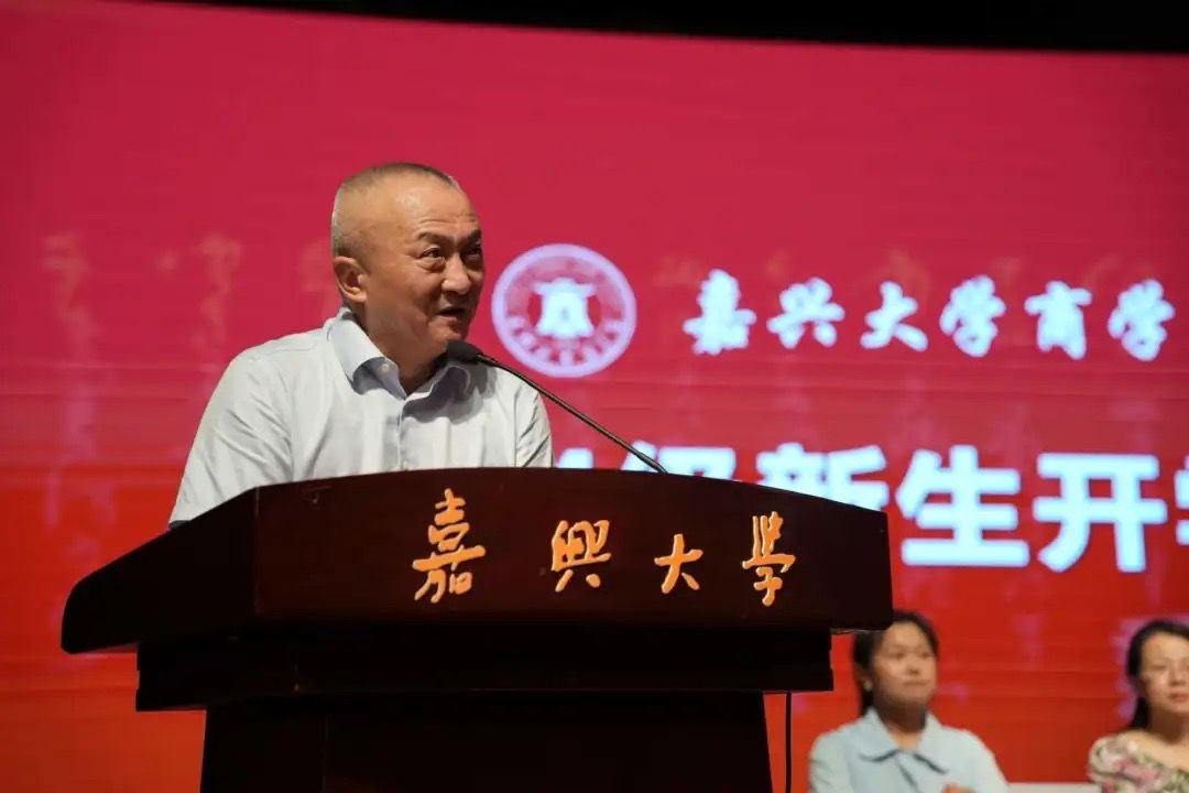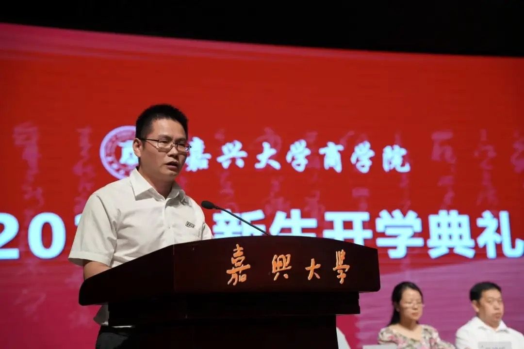 开学典礼在庄严的国歌声中拉开帷幕。学院院长李勇教授发表讲话。他代表全院师生对来自全国26个省(市)的657名本硕新生表示热烈欢迎。他指出,本届新生有三个“新”,“新大学生”、“新嘉大学子”、“新嘉大商院人”;他强调,勤奋乃为学之本,也是上学之要。到了大学,要重新审视学习的意义,要注重打牢专业基础、拓宽知识广度,并培养善于思考、勇于创新、能应对复杂问题的综合能力;他希望同学们在接下来的大学生活中既要脚踏实地,锤炼本领,也能仰望星空,心系“国家事”,勇于担当作为,做新时代的有为青年。