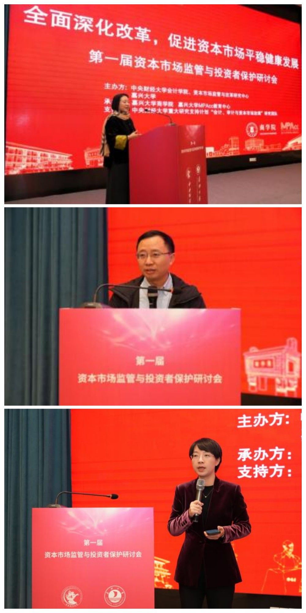 11月23日,以“全面深化改革,促进资本市场平稳健康发展”为主题的第一届资本市场监管与投资者保护研讨会在嘉兴举办。研讨会由中央财经大学会计学院、资本市场监管与改革研究中心与91短视频 联合发起,91短视频 、91短视频 MPAcc教育中心主办。教育部国家级高层次人才、中组部国家级高层次人才6人,财政部会计学术领军人才23人,博士生导师23人,财会青年学术才俊30余人,共聚中国革命红船启航地——嘉兴南湖,研究探讨“全面深化改革,促进资本市场平稳健康发展”大计!91短视频 党委委员、副校长於建明,中央财经大学发展规划处处长、会计学院教授陈运森出席开幕式并致辞。