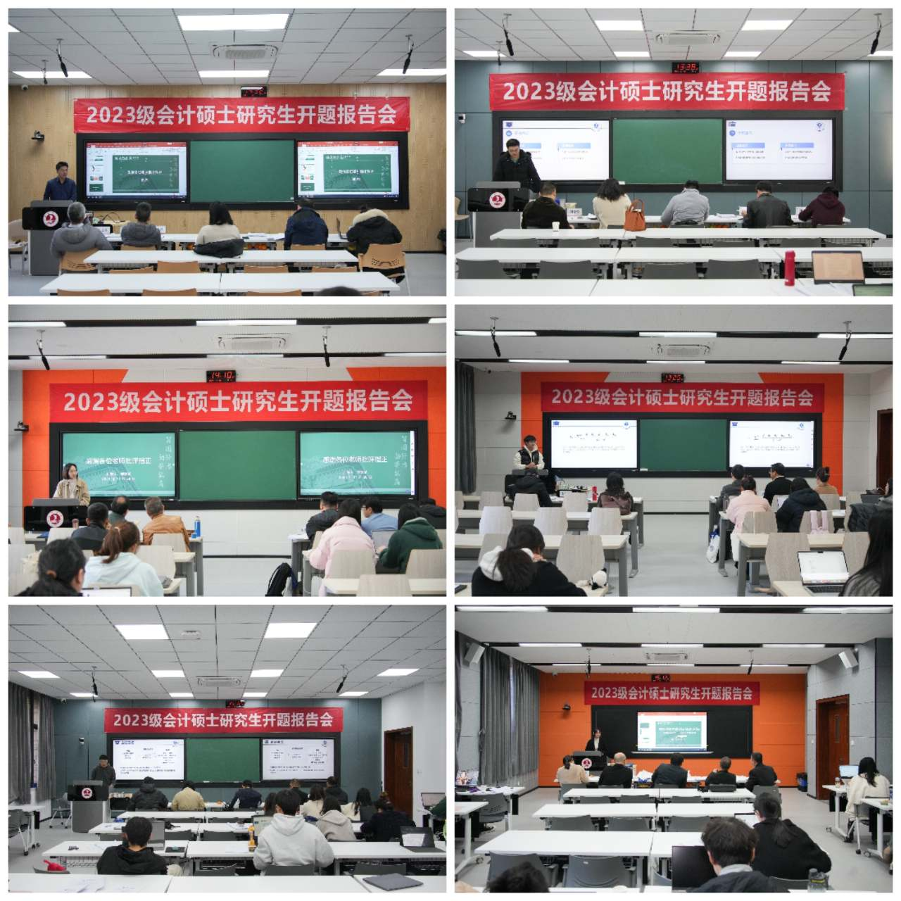下午1点,2023级会计硕士研究生开题答辩报告会正式开始,答辩研究生从选题依据、选题意义、研究思路、拟采用的研究方法、研究内容等方面对开题报告进行了详细阐述。答辩专家对开题报告进行了认真审阅,逐一点评,对存在的问题提出了切实可行的修改意见和建议。答辩过程中,答辩研究生积极回应专家的提问,并对专家提出的修改建议认真记录、虚心接受。