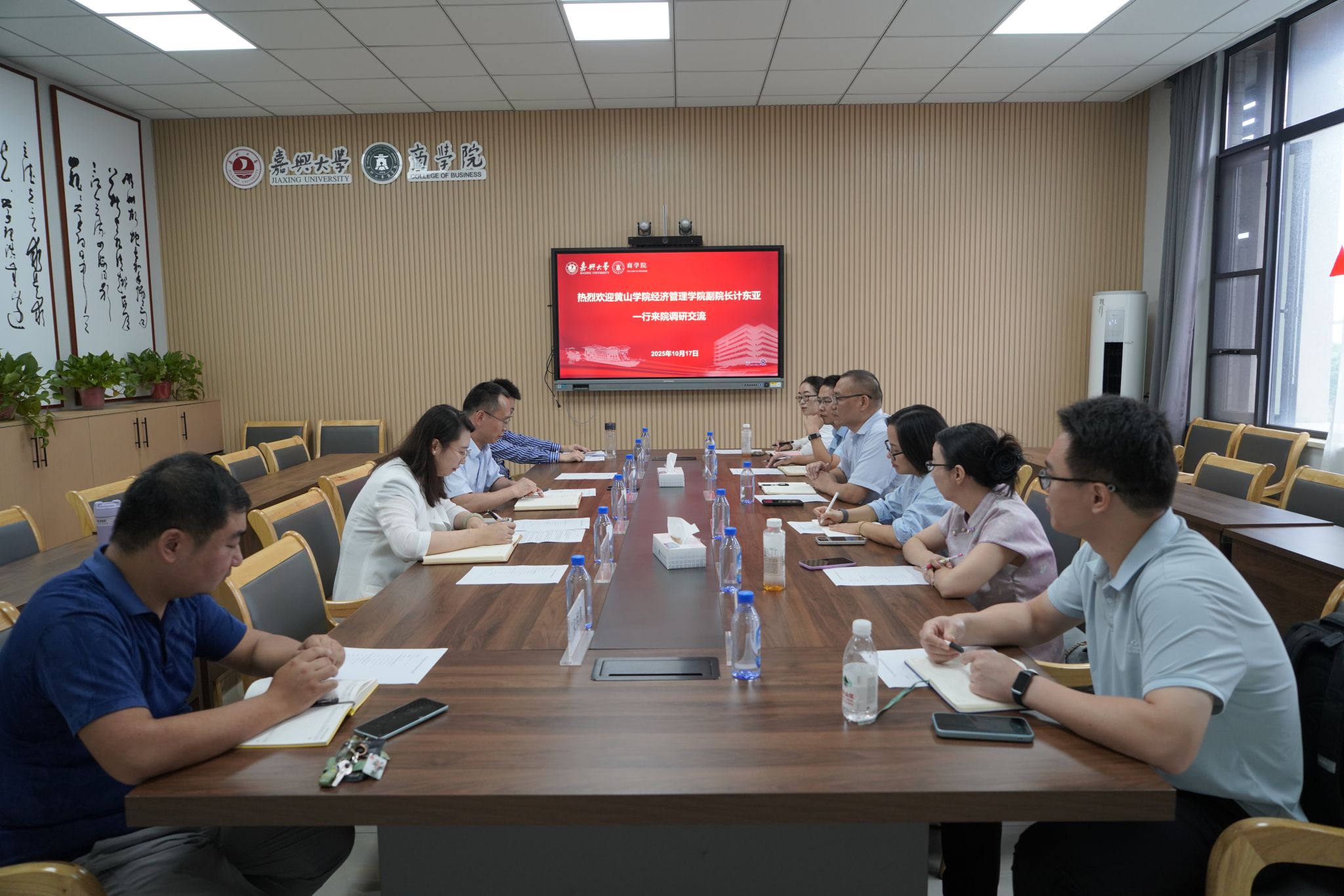 10月17日上午,黄山学院经济管理学院副院长计东亚一行6人来91短视频 调研交流。91短视频 副院长冯磊东、学术副院长智佳宁及相关专业负责人、教研室主任参加交流座谈。会议由冯磊东主持。