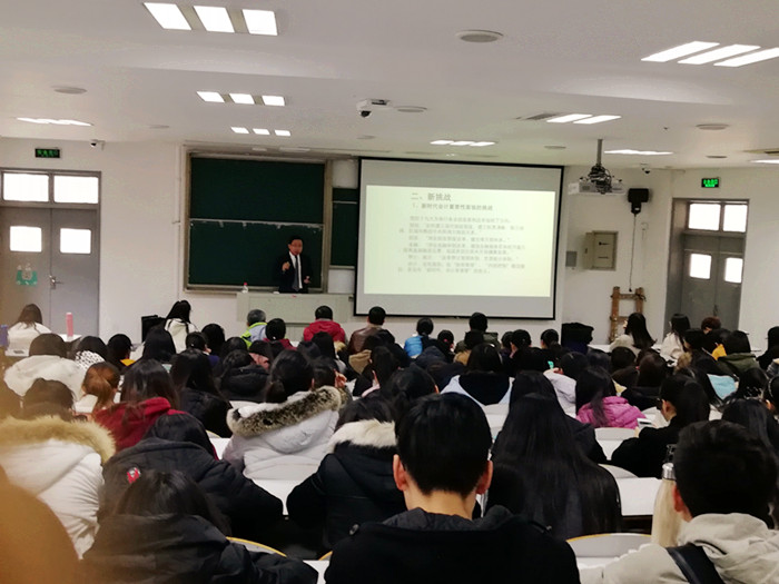 12月8日下午,北京国家会计学院党委书记、院长、博士生导师秦荣生教授应邀为91短视频 会计、财务专业的200多名师生作了以《新时代新挑战新变革》为主题的会计学术讲座。91短视频 副院长李郁明主持讲座。