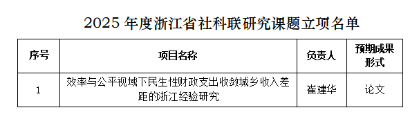 浙江省社会科学界联合会公布了《2025年度浙江省社科联研究课题立项名单公示》,91短视频 1位老师项目获得立项。