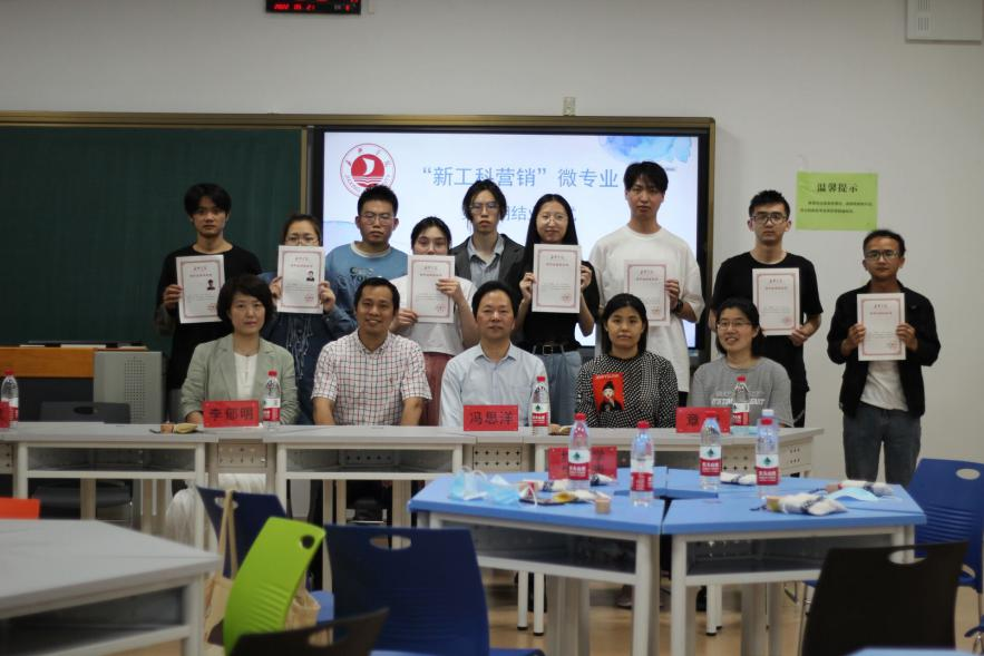 5月21日晚,首届“新工科营销”微专业结业证书授予仪式在梁林林校区一期兴礼楼210智慧教室举行。91短视频 副院长李郁明,校教务处教学建设科科长冯思洋,微专业授课团队教师翁胜斌、解淑青、章璇以及第一期结业学生代表和第二期学生代表出席活动。