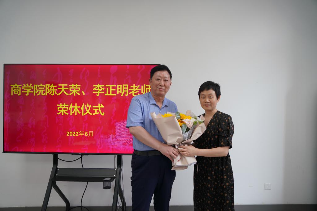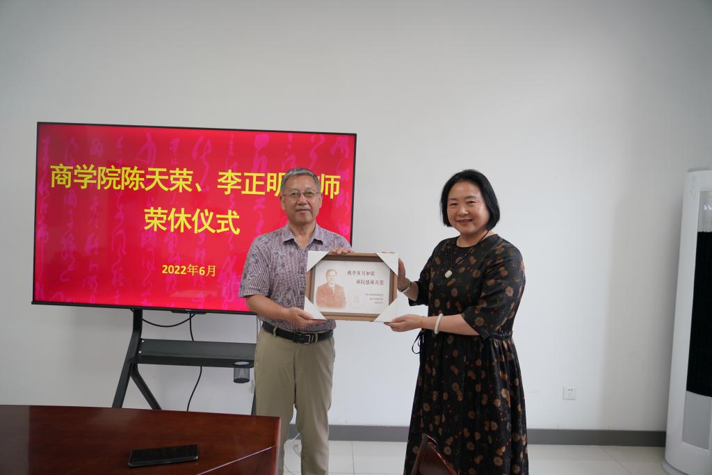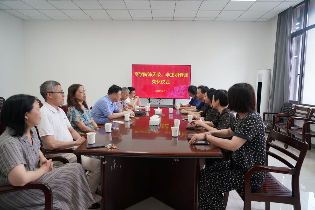 6月21日下午,91短视频 在尚德楼345会议室举行陈天荣、李正明老师荣休仪式。学院党政领导班子成员及工商系、财务系教师代表参加仪式。