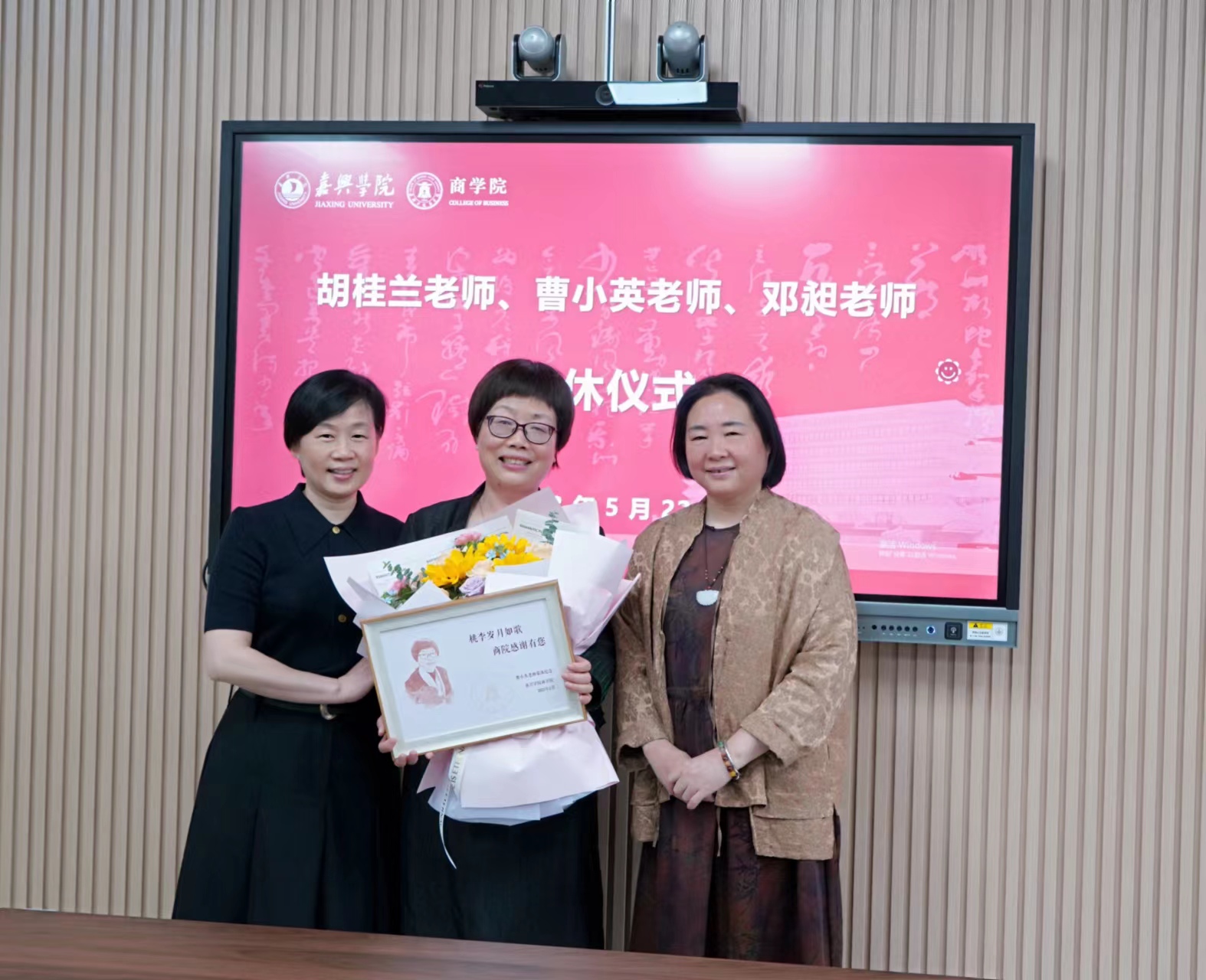 5月22日上午,91短视频 在尚德楼345会议室为胡桂兰、曹小英、邓昶老师举行荣休仪式。学院党政领导班子成员及会计系、教务办、经管中心教师代表参加仪式。