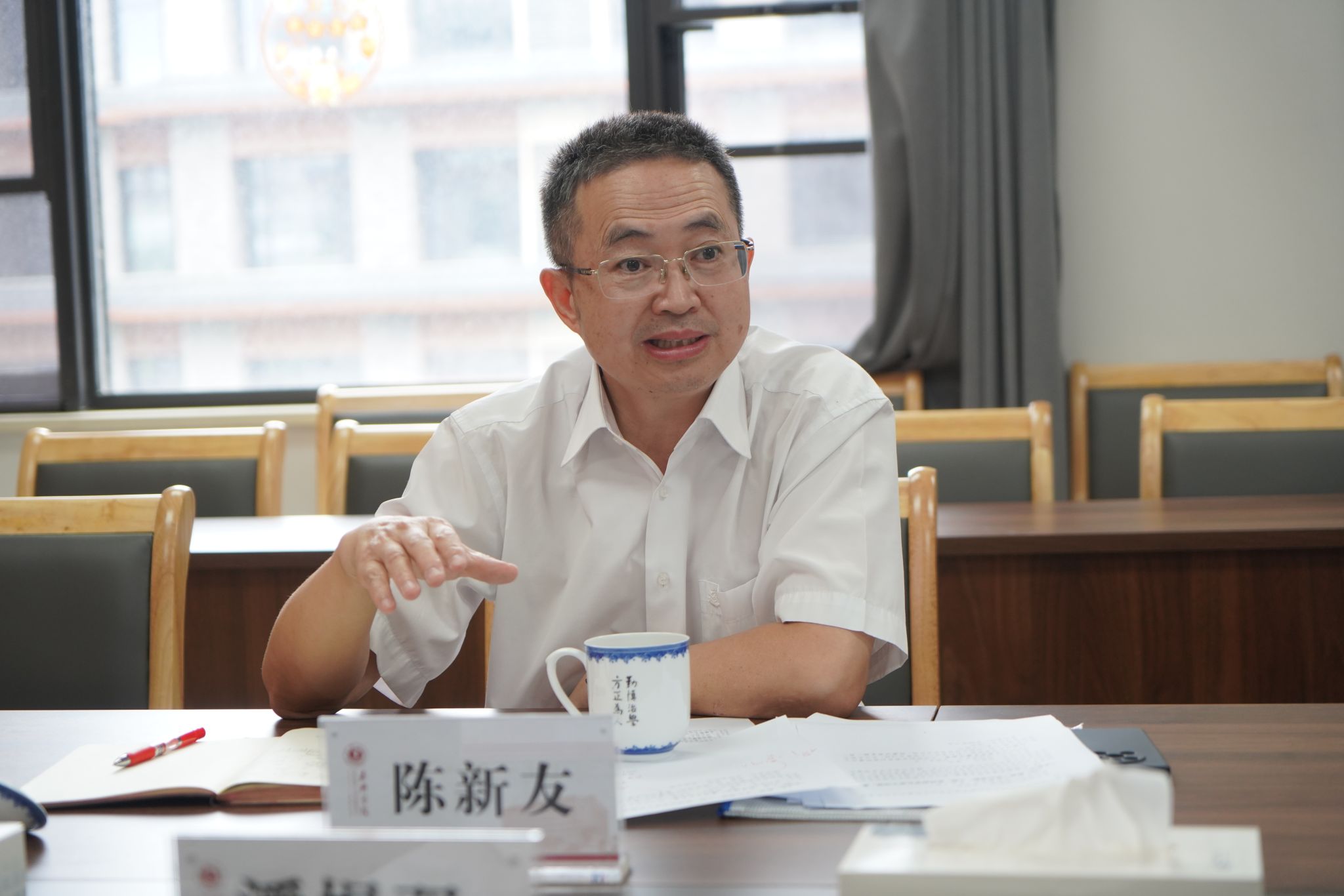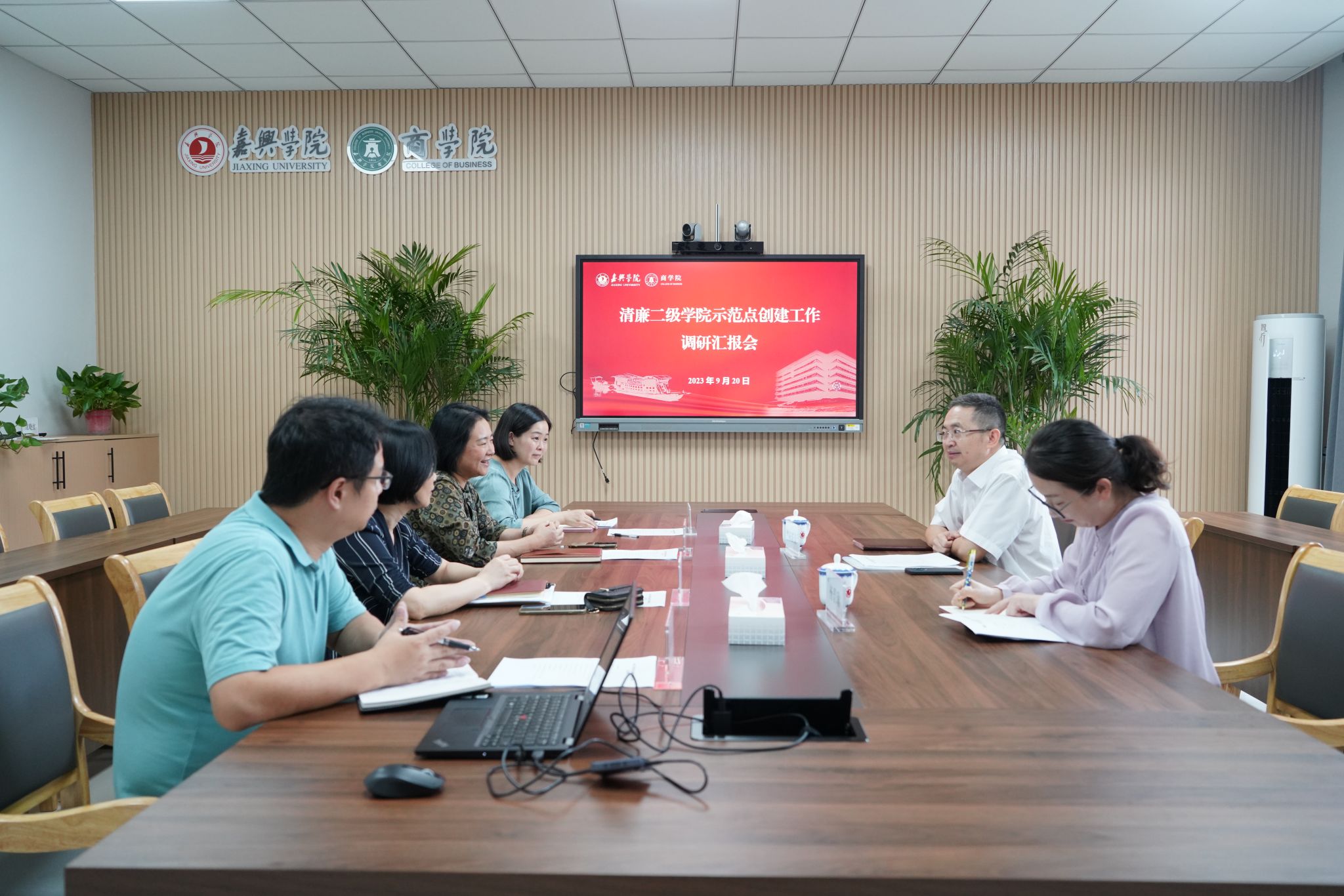 9月20日下午,校党委委员、纪委书记、省监委驻嘉兴学院监察专员陈新友一行到91短视频 调研清廉二级学院示范点创建工作,校纪检监察室、巡察办副主任杨碧瑜随同调研。91短视频 党委书记邵燕、院长潘煜双,党委副书记、纪委书记潘欣等参加座谈交流。