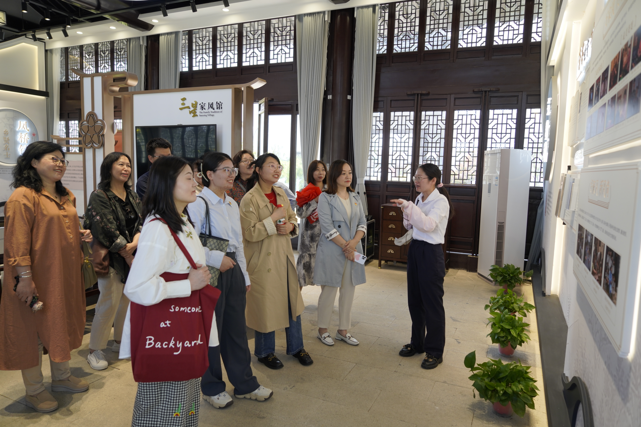 在讲解员的带领下,老师们参观了“桃源家风馆”和“清风廉韵馆”两个主题场馆。在“家风传 乡贤名士”、“共传承 经典家训”、“风清扬 清廉驿站”和“话廉心 非遗传承”四个展陈区,通过展板、图片、实物等载体,党员们一起学习回顾了张廷济、巢鸣盛等古贤的人物事迹,一起了解认识了葫芦烙画、菱画、竹刻等凤桥“非遗”特产。在参观过程中,党员们认真品读,仔细感悟,真切感受了祖辈先贤将个人、家庭与国家的命运紧紧联系在一起的爱国情怀,深刻感受了中华民族优秀家风和传统文化的深刻内涵,接受了优良家教家风文化浸润,涵养了清风正气。
