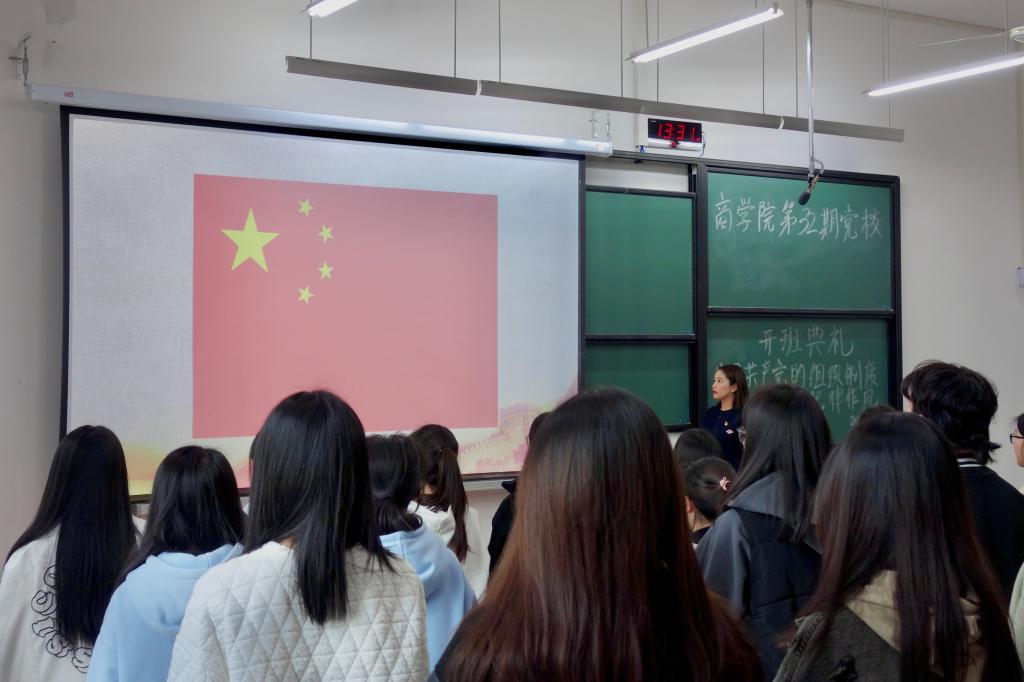 开班仪式结束后,潘欣为学员们作动员讲话并讲授党校第一课。潘欣从中国共产党的组织构成切入,为学员们系统梳理了党的组织架构。潘欣紧扣时事热点讲解了党的民主集中制、六大纪律和三大作风等重要内容。潘欣强调,党员是一面旗帜,更是一份责任和担当,她勉励同学们要立志定向、刻苦用功,谨记新时代赋予大学生新的历史使命,争做先锋模范,要从思想上、行动上真正入党。