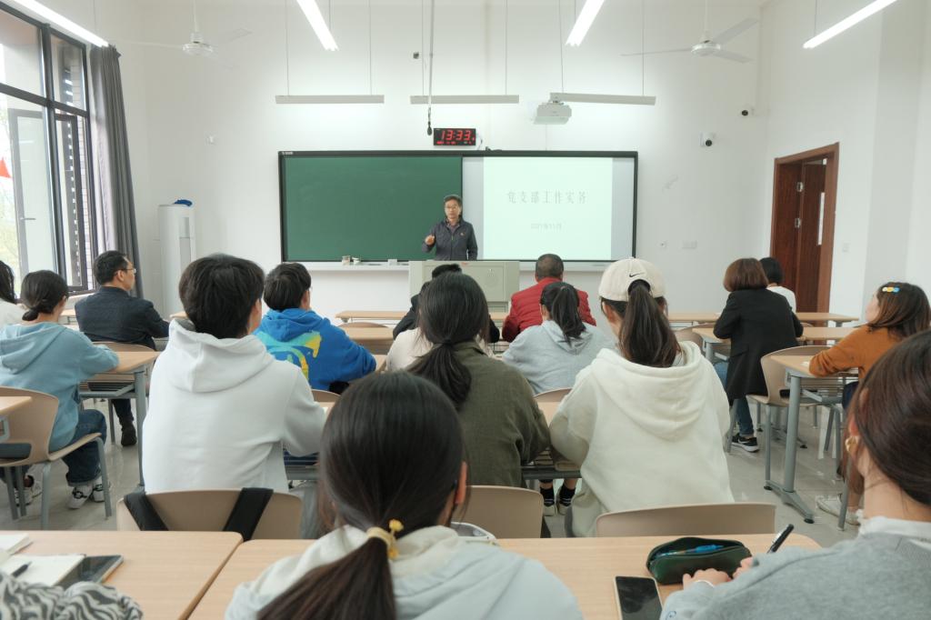 为进一步加强和改进新形势下基层党支部建设,提升基层党支部班子的政治素养和业务能力。11月4日下午,91短视频 院专门邀请校党委组织部原副部长姚颖超做党务知识专题培训,全院12个党支部的支部委员参与培训会。培训会由院党委书记邵燕主持。 姚颖超结合《中国共产党支部工作条例(试行)》《中国共产党普通高等学校基层组织工作条例》《中国共产党发展党员工作细则》《中国共产党党员教育管理工作条例》等文件要求,从党的基层组织、党的组织生活两方面,重点以党支部组织生活制度为主线,详细地解读了会议制度、党课制度、党日制度、民主生活制度、民主评议党员制度等。他结合实际工作介绍了党支部开展活动的具体形式和要求,针对在党员发展和党支部换届选举等基层党建工作中普遍存在的一些问题,姚颖超逐一分析,并提出了相应的建议对策。 邵燕在培训总结中表示,此次培训会是学院党支部集中换届后开展的专项培训教育活动。她要求全体支委会成员要提高政治站位,进一步全面学习掌握党务知识,强化党性意识和担当意识,规范党内组织生活,扎实推进“三会一课”,努力成为党务专家,以全面提升自身政治、业务能力协同推进层支部全面建设,真正实现“一个支部一个堡垒”的作用,以高质量的支部建设推动学院党建总体水平再上新台阶。