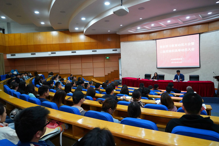 4月15日下午,91短视频 在行政楼一楼报告厅举行党史学习教育动员大会暨二级党组织选举动员大会。会议由91短视频 党委副书记杨燕群主持,91短视频 全体师生党员参加会议。