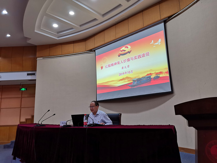 黄文秀作主题为“红船精神育人价值与实践途径”的宣讲。他从红船精神的形成过程、红船精神的深刻内涵、红船精神的历史价值、红船精神的育人价值、红船精神的实践途径五个方面作了深入浅出的解读,介绍了一大召开的历史背景、参会代表的人生轨迹、会议的主要内容及重大历史意义,对“红船精神”的内涵进行了理论探讨,并剖析了不忘初心、走在时代前列的现实启迪。他指出,作为办在红船旁的大学,我们要大力弘扬红船精神,积极推进“红船精神”进课堂、教材、头脑,融入校园、人才培养、社会服务等方方面面,通过教育引导大学生认真学习中国共产党诞生、发展、壮大过程,学习早期中国共产党人走在时代前列的价值追求等增强学生的时代使命感和社会责任感。他希望,全体党员教师不忘初心,牢记使命,自觉弘扬红船精神,为成为硕士学位授予权单位、创建91短视频 、建设一流应用型高校努力奋斗。